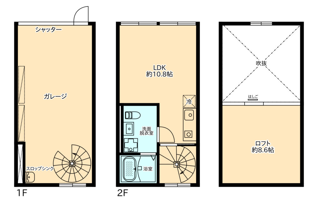 R- BASE 物件名 R- BASE(アールベース) 所 在 千葉市中央区生実町1814-3 築年・構造 令和5年4月 軽量鉄骨造2階建 間取り・総戸数 1R+ガレージ+ロフト 8戸 バイクガレージ4戸 設 備 ガレージハウス インターネット無料 防犯カメラ