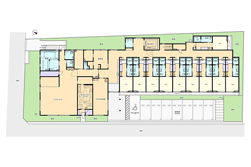 サービス付き高齢者向け住宅自立型 物件名 サービス付き高齢者向け住宅(自立型) 所 在 千葉県船橋市上山町2-286-1 築年・構造 平成26年築 木造合金メッキ葺2階建 間取り・総戸数 25.05m² 26室 駐車場8台 備 考 デイサービス併設